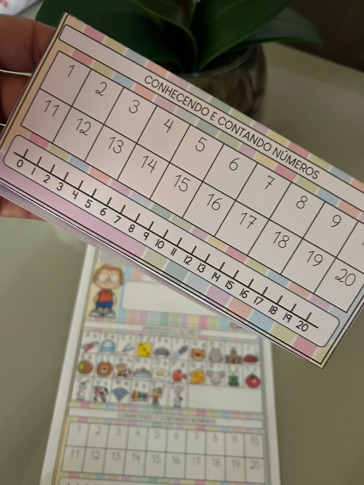 No crachá contém: aprendendo números até 20, alfabeto e também espaço para o nome.