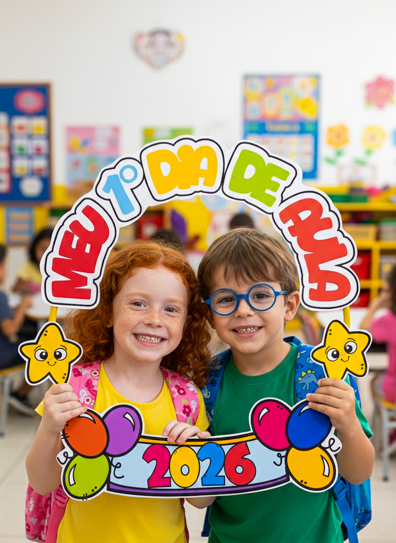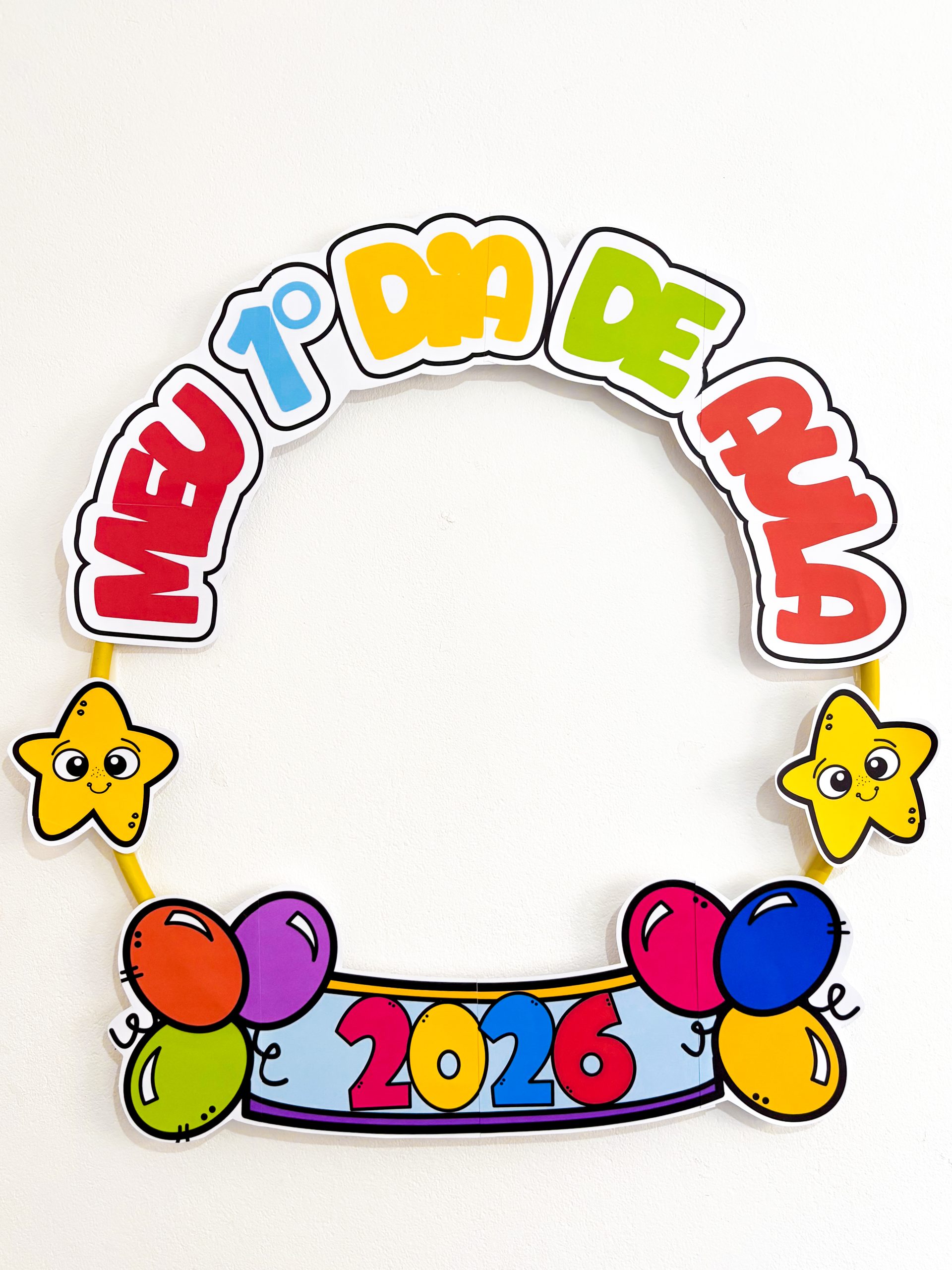 Esse bambolê para fotos do primeiro dia de aula é perfeito pra registrar aquele sorriso tímido (ou empolgadíssimo!) da turma logo na chegada.