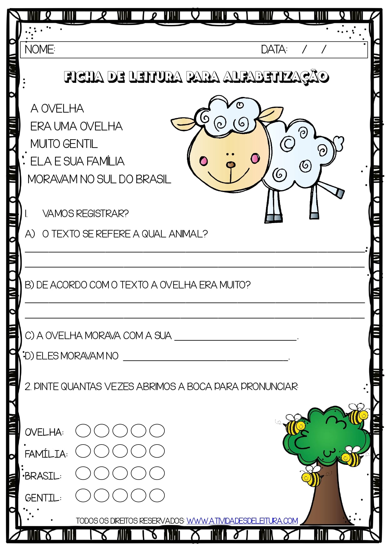 Este lindo material contém 2o fichas de leitura para trabalhar com sua turma de alfabetização.