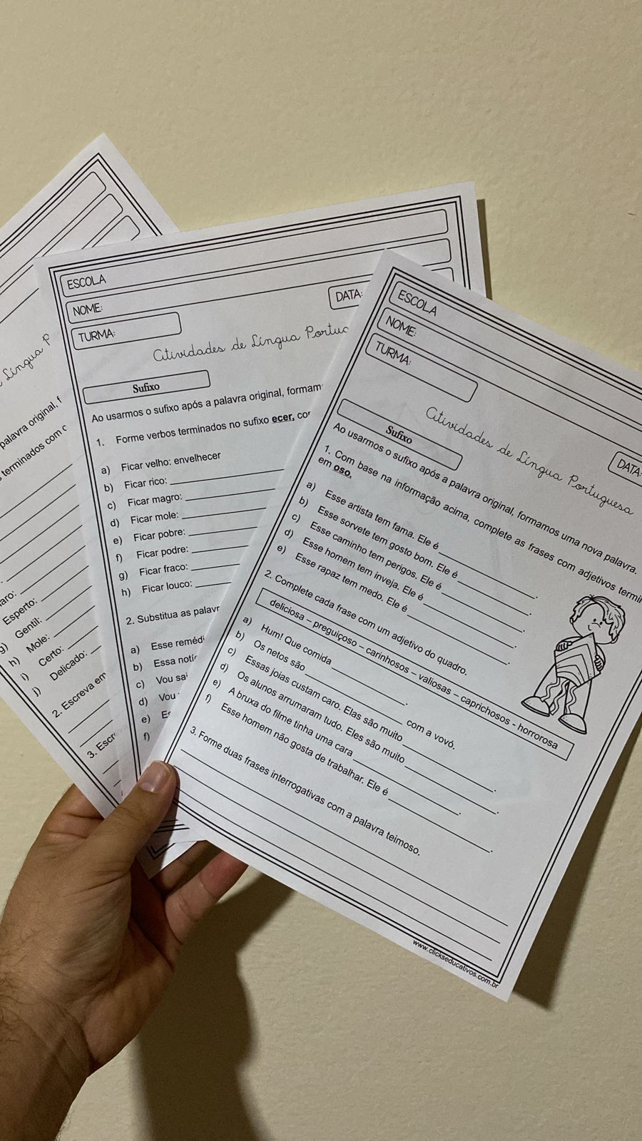Com estas três folhas de atividades, você poderá trabalhar com seus alunos o conceito de sufixo e formação de novas palavras.