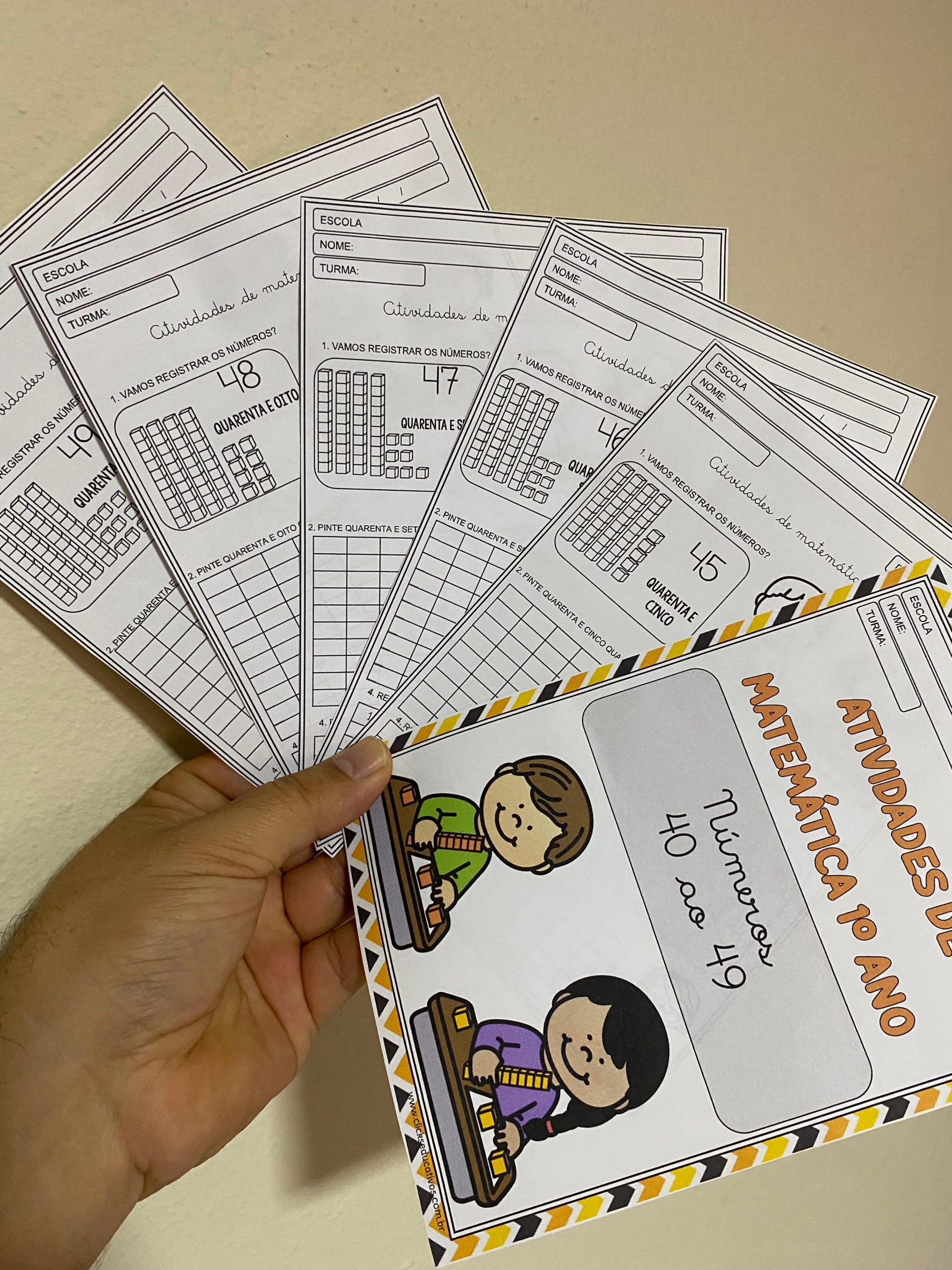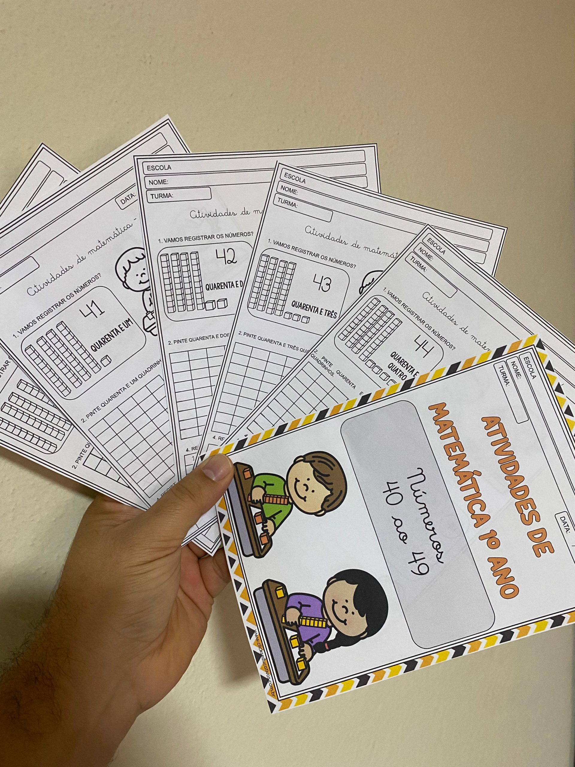 Nosso material de hoje trabalha números, composição numérica, representação por material dourado e também registro do 40 ao 49.