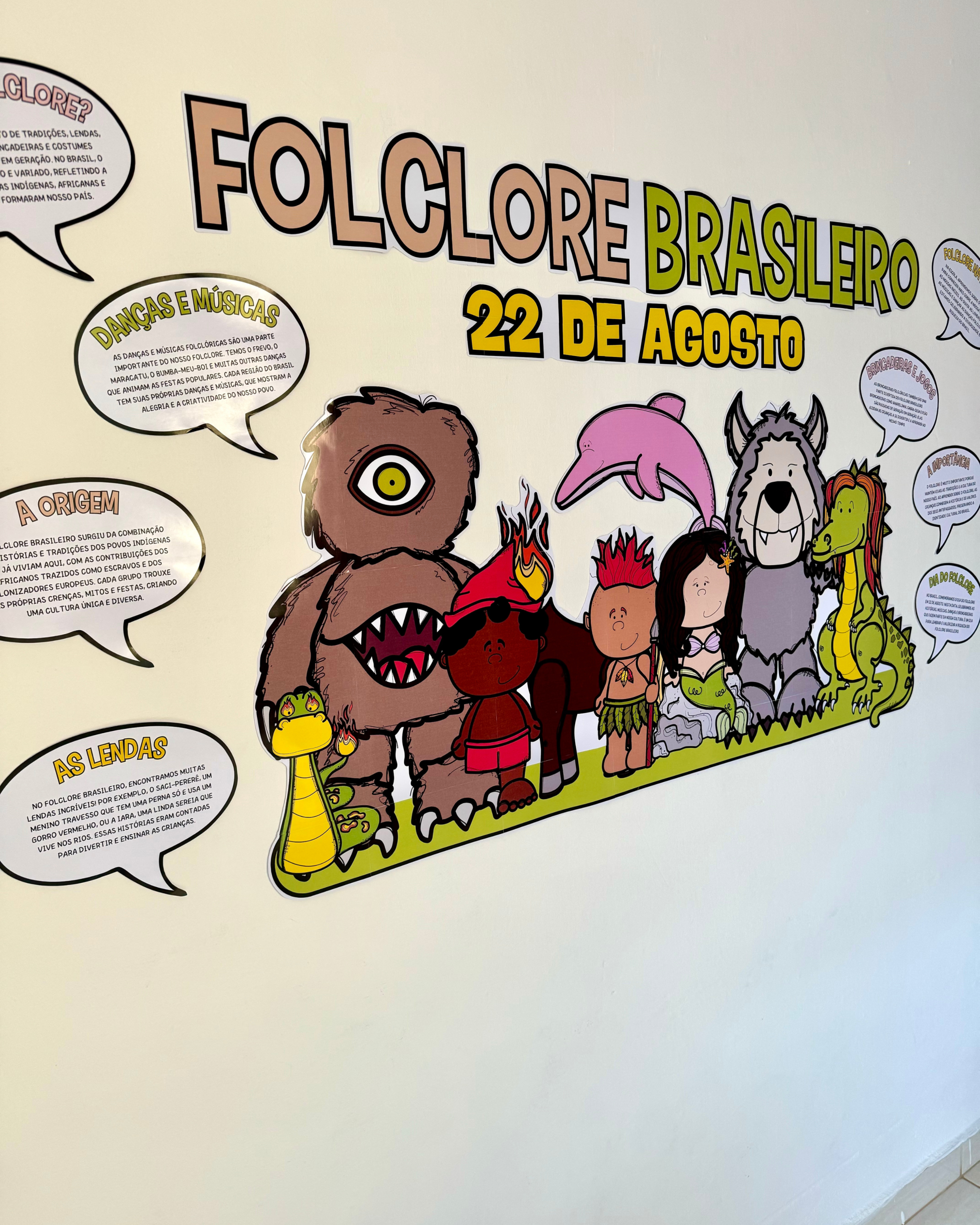 Painel informativo tema Folclore Brasileiro. O arquivo já vai ampliado e pronto para impressão em formato PDF.