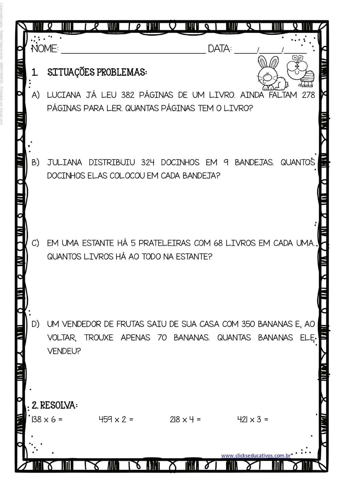 Atividades de revisão para turma de 4º ano.