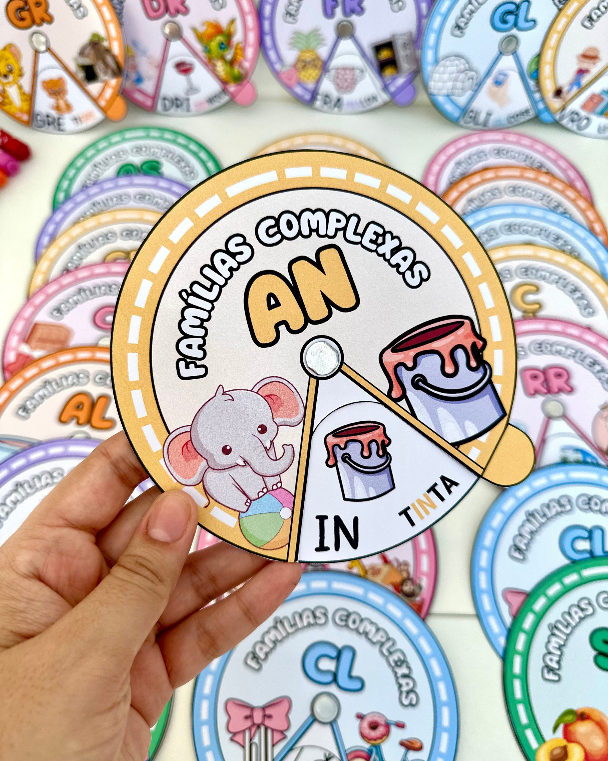 Aprendizagem Ativa: Ao girar a roleta e encontrar as palavras com sílabas complexas, as crianças estão